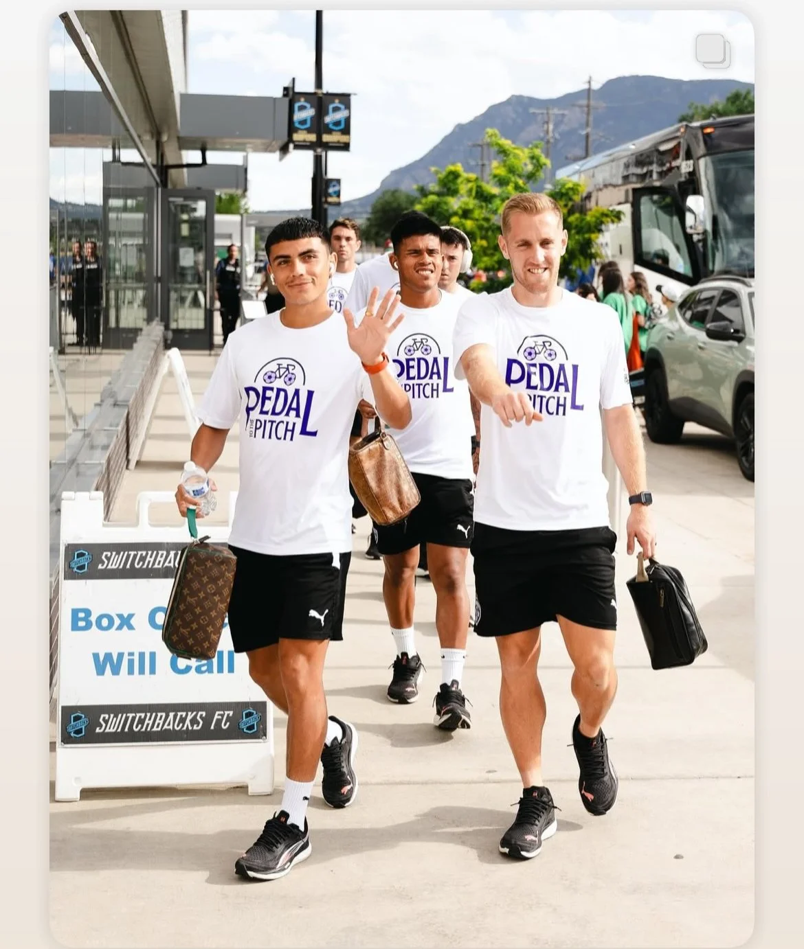 Lou City players wearing Pedal to the Pitch shirts on way into stadium.